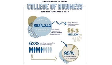 Helping to make college affordable for all of its students is a priority for the CoB but is only one part of the value proposition it offers to students. R.J. Nemer, Dean of the College of Business said, “To provide students with access to excellent scholarship opportunities is an added benefit that makes the CoB more valuable as a higher education option in the region. We are consistently ranked as one of the best business schools in Northeast Ohio, ensuring our students have access to paid internships and professional development. A means to fund our students' education is a vital component of this process.”